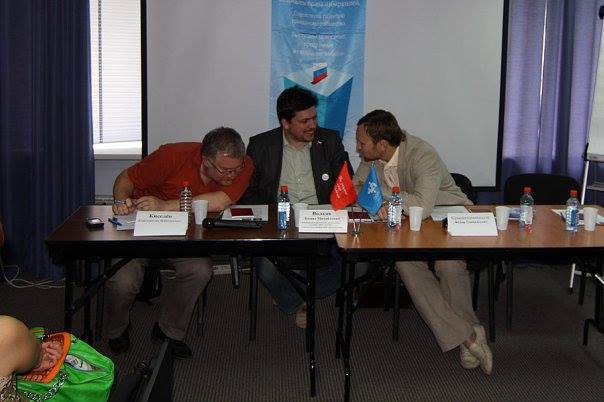 Круглый стол, организованный ассоциацией «Голос», посвященный проведению общегородского референдума: Константин Киселев, Леонид Волков, Федор Крашенинников.