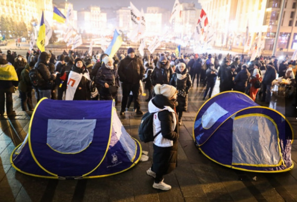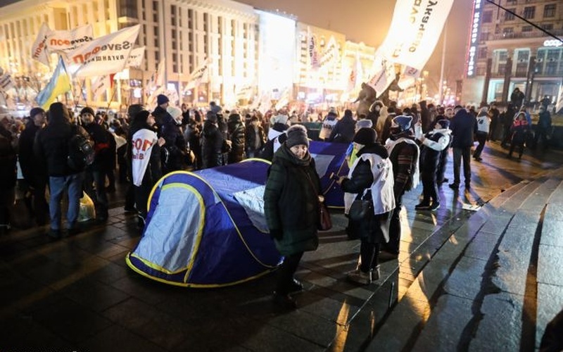 В Киеве на Майдане Независимости продолжается акция протеста «SaveФОП». Около 200 участников митинга намерены ночевать на площади, для этого оборудованы палатки.