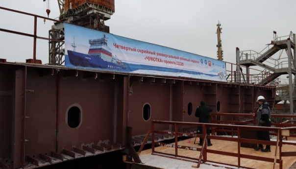 Балтийский судостроительный завод провел закладку очередного атомного ледокола проекта 22220 (ЛК-60Я), уже пятого в серии и четвертого серийного. Судно, получившее название «Чукотка», будет строиться с учетом новых технических решений, опробованных в ходе испытаний на головном ледоколе серии — «Арктика».