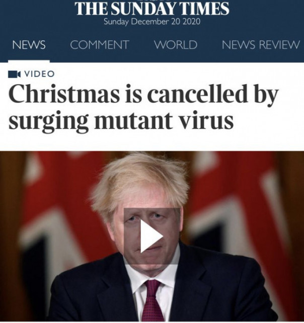 Министр здравоохранения Мэтт Хэнкок вечером 20 декабря панически возопил: "Новый штамм COVID-19 вышел из-под контроля. Данный штамм коронавируса — огромная проблема".