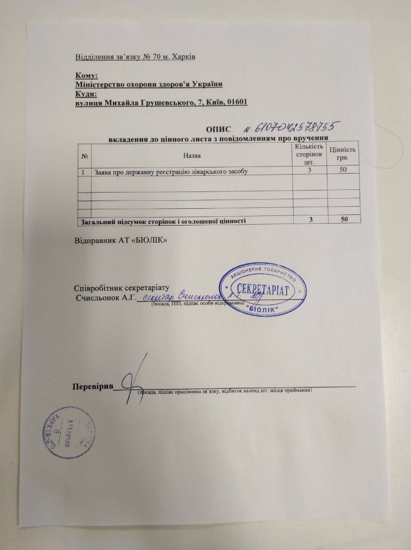 АО «Биолек» также опубликовало копии документов, в том числе запроса на регистрацию «Спутника V».
