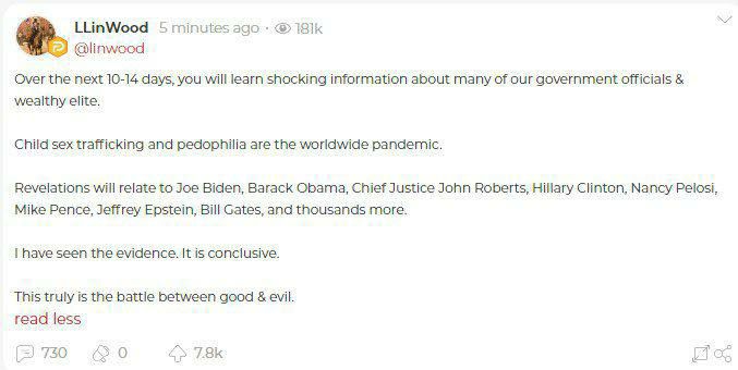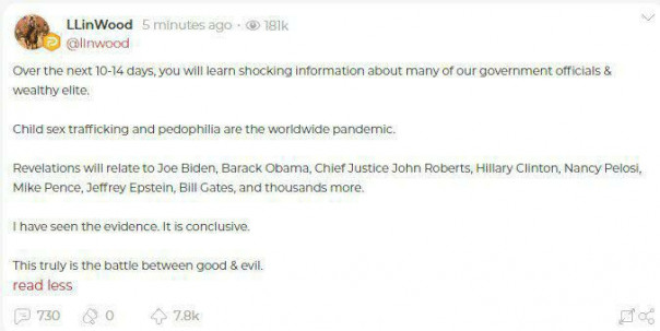 Откровения коснутся Джо Байдена, Барака Обамы, главного судьи Джона Робертса, Хиллари Клинтон, Нэнси Пелоси, Майка Пенса, Джеффри Эпштейна, Билла Гейтса и тысяч других.