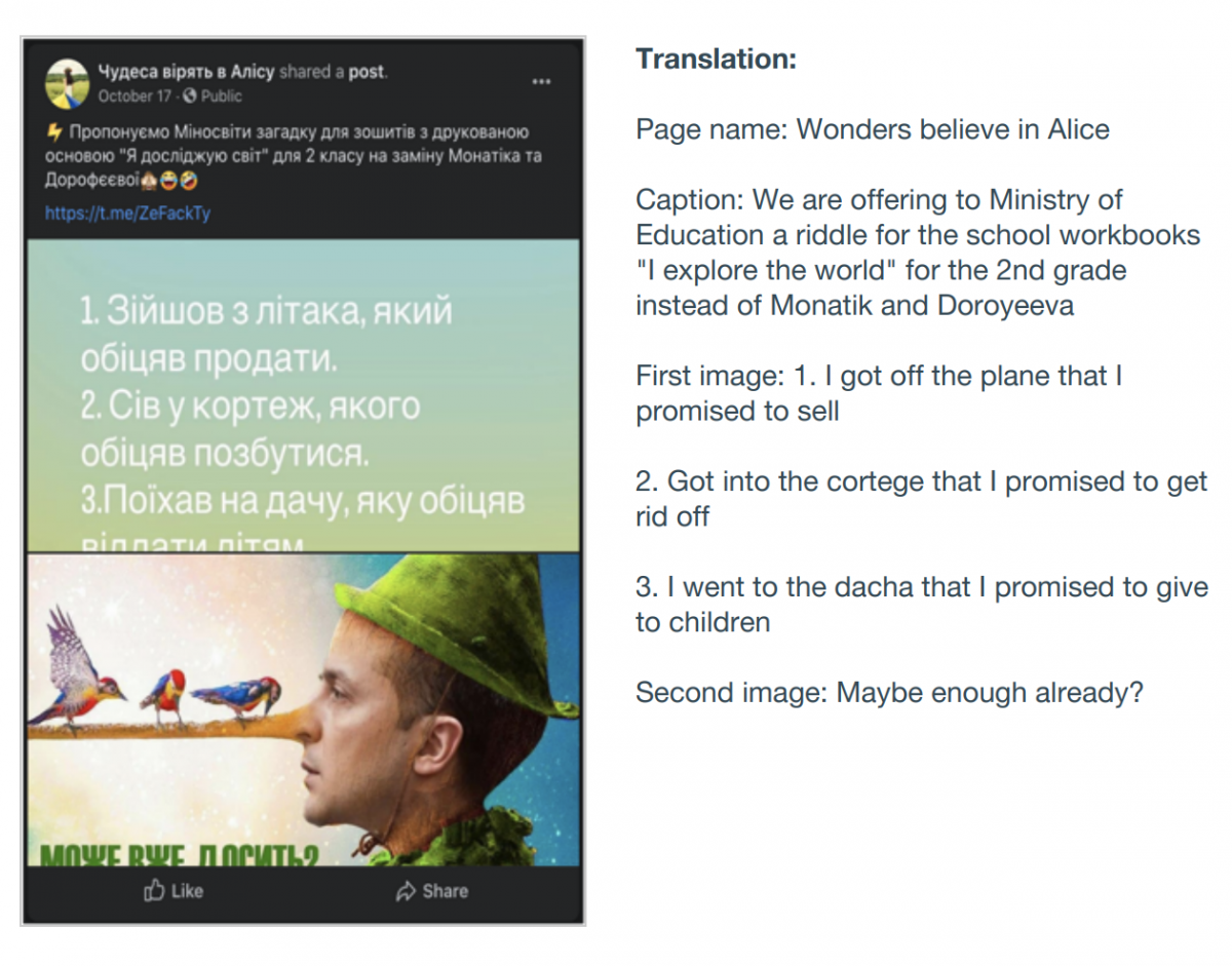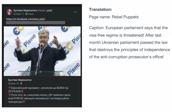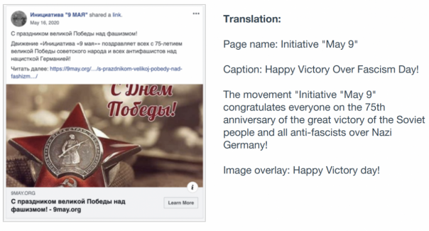 В отчете администрации говорится, что в ленте этого аккаунта «публиковалась ложь о политиках Молдовы, отравлении в Солсбери, победе России во Второй мировой войне, кроме того сеть расхваливала СССР и критиковала европейских чиновников».