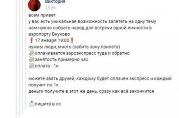 "Ребят, а что за акция, не подскажете? Ну ладно, тогда мы сами. Друзья, приходите во Внуково в воскресенье в 19 часов встречать Алексея Навального. Будем «мешать проходу граждан» вместе", - призывает группировка "Бессрочный протест".