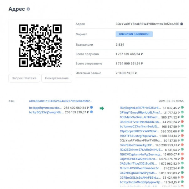 Всего же с того момента, как ФБК завел биткоин-кошелек, Навальный обогатился на 1 млрд 761 млн 573 тыс. рублей.