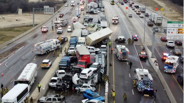 Preliminary information on MCI in Fort Worth. More info will be released later. At least 100 vehicles involved, 5 fatalities, 36 transported to local hospitals. #yourFWFD continues to work the incident and will be on scene for several hours. pic.twitter.com/DUtRJFKSI9