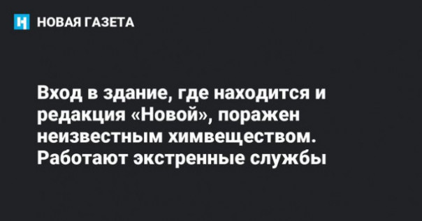 Вот, кстати, заявление на портале самих пострадавших: "Вход в здание, в котором находится в том числе и редакция «Новой газеты», расположенная по адресу Потаповский переулок, 3, подвергся химической атаке. В помещениях сохраняется стойкий резкий химический запах, который чувствуют все посетители и сотрудники редакции, а также других организаций, расположенных в здании. Источник атаки пока не установлен. На месте работают МЧС, МВД и ФСБ (здание представляет собой режимный объект). По мнению наших сотрудников, изучавших обстоятельства нападения в июле 2017 года на дом и машину журналистки «Новой газеты» Юлии Латыниной, запахи очень похожи. Тогда дом и машину Латыниной обрызгали едким газом неизвестного состава, обладающим неприятным запахом. «Они предоставили нам непередаваемую возможность понюхать скунса. В рамках государевой борьбы с крамолой они опрыснули всю дачу тошнотворной химической жидкостью с ароматом гнилого лука, смешанного с не менее дивным ароматом чеснока, дерьма и немножечко бытового газа», — писала тогда Латынина. Это не первый случай химической атаки на здание, в котором находится редакция «Новой газеты». В апреле 2017 года в редакцию пришло письмо в конверте, в котором находился неизвестный белый порошок. Первичный анализ показал, что вещество не радиоактивно, конверт изолировали и отправили на экспертизу".