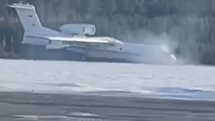 Передняя стойка подломилась у принадлежащего МЧС самолета-амфибии Бе-200 во время взлета в красноярском аэропорту Емельяново. Последствия аварии сняли на видео.