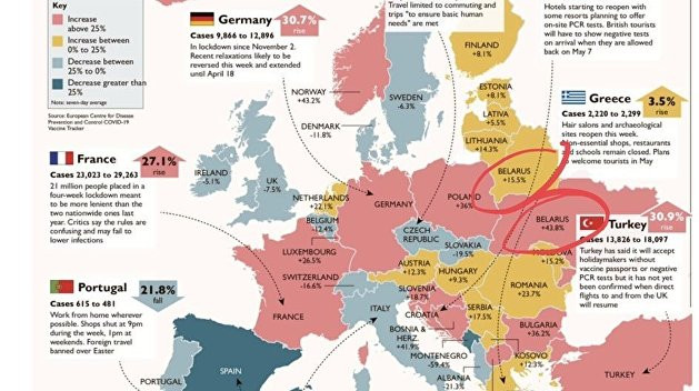 Карта посвящена распространению коронавирусной инфекции в европейских странах.