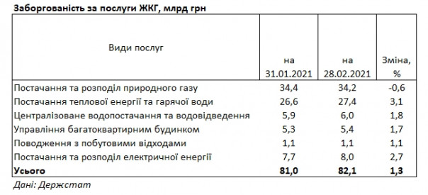 Задолженность населения по оплате жилищно-коммунальных услуг за февраль выросла на 1,1 млрд гривен. По состоянию на конец февраля 2021 года долги достигли 82,1 млрд гривен.