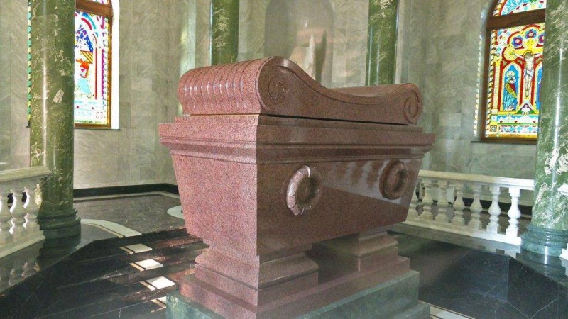 В центре — 23-тонный саркофаг, обошедшийся в 150 тысяч долларов. Крышка из красного гранита весом в две с половиной тонны.