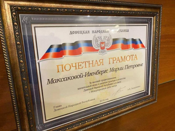 На канале появилась почетная грамота, которой покойный глава ДНР наградил Максакову еще в 2016 году.