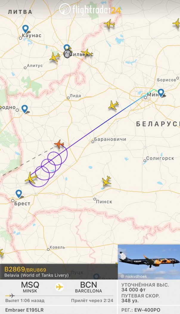 Рейс из Минска в Барселону заходит на 5-й круг под Брестом. Польша не пропустила самолет "Белавиа" в своё воздушное пространство