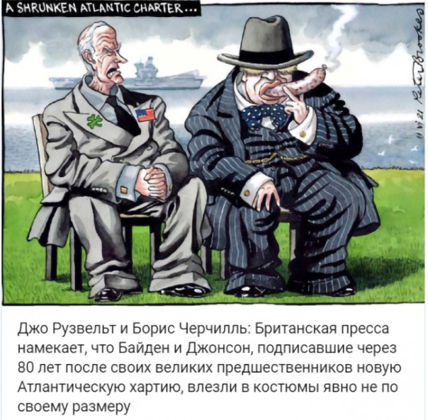 В так называемой Атлантической хартии содержатся ряд дежурных пунктов о тесном сотрудничестве США и Великобритании с целью продвижения ответственного поведения в киберпространстве и ответственности за международную безопасность, которая якобы заключается в развитии ядерных средств для защиты НАТО. Одной из тем в переговорах Байдена и Джонсона, естественно, были отношения Запада с Россией.