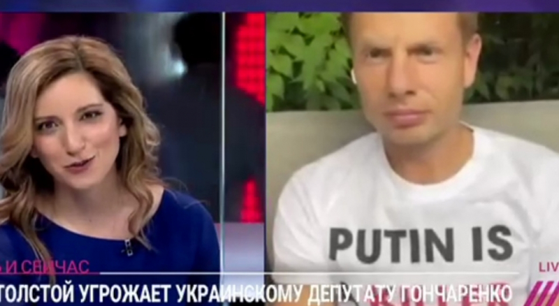 «Наблюдатель из европейского Сомали». Гончаренко пролез в российский эфир в футболке «Путин-убийца»
