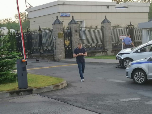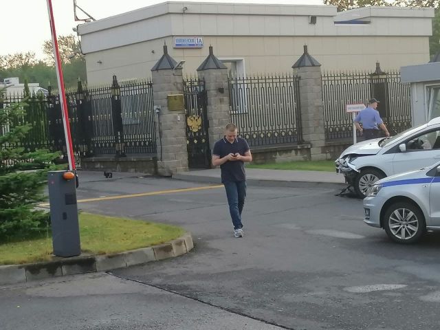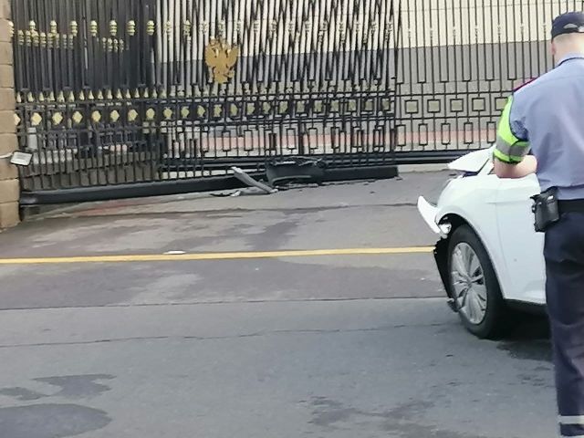 В ворота посольства России в Минске въехал легковой автомобиль, водитель пытался скрыться с места ДТП