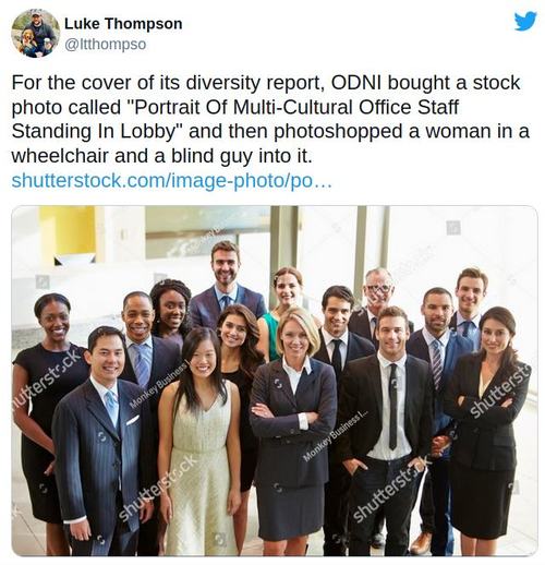 Управление Главы национальной разведки США (ODNI) подверглось критике после публикации отчета об итогах проведения инклюзивной кадровой политики за прошедший год. Так, негодование вызвала обложка документа, на которой изображены одетые в деловом стиле сотрудники.