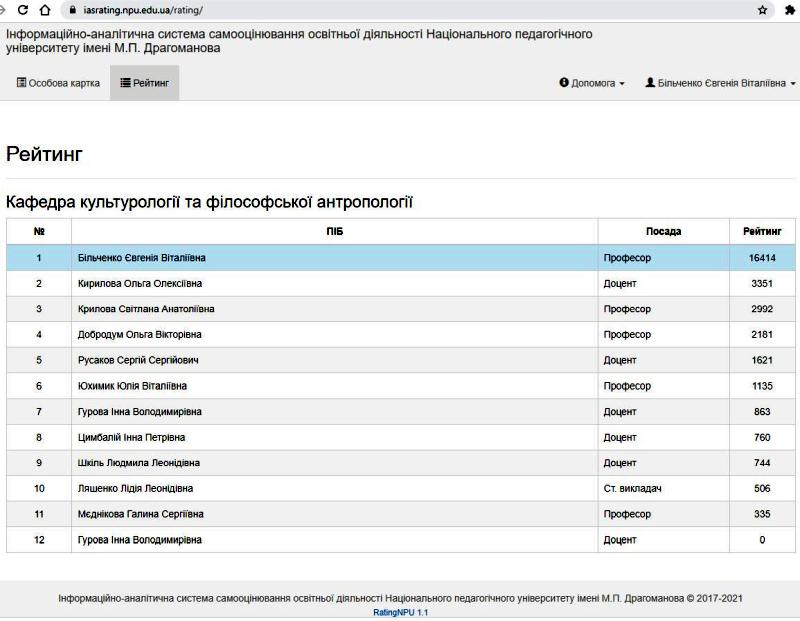 «У меня не просто первое место, а первое место с немыслимым отрывом. Об этом в университете все знают. Считает машина. Там всё объективно. Часть проведённых мной научных конференций и статей, примерно третья часть, была совместно с российскими коллегами», — написала Бильченко.