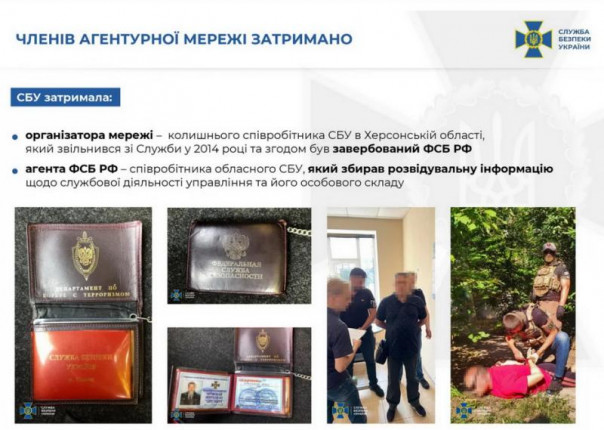 В Службе безопасности Украины (СБУ) отчитались о «разоблачении и прекращении деятельности агентурной сети ФСБ РФ», действовавшей в Херсонской области. В её состав входили СБУшники, сотрудники прокуратуры и полиции.