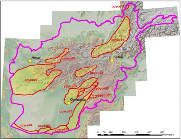 Карта литиевых месторождений Афганистана, составленная американцами во время геологоразведки в 2006-2007 годах. Страна, возможно, обладает самыми большими в мире запасами этого металла, который становится все более ценным в эру "зеленой" экономике и электромобилей. Источник