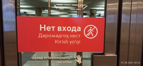 На станции Московского метрополитена "Лесопарковая" обновили указатели. Теперь текст на дверях и табличках приводится на русском, таджикском и узбекском языках.