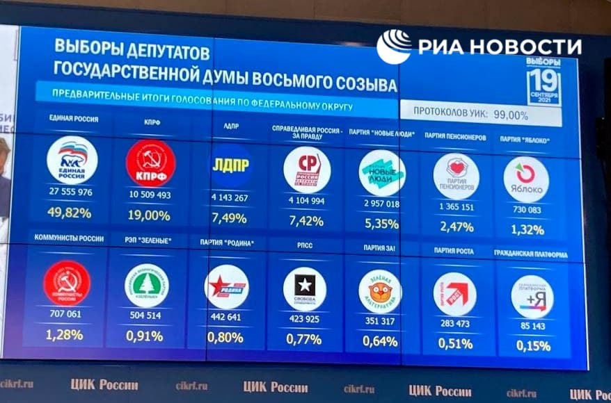 Итоги выборов в Госдуму — 2021. Обработано протоколов: 99,00%