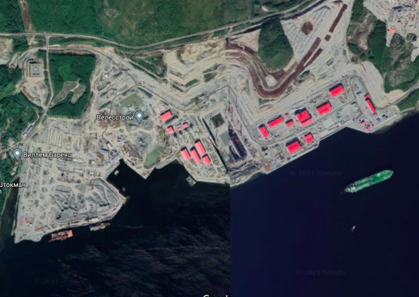 Верфь строят уже несколько лет. На последних спутниковых снимках она выглядит так: