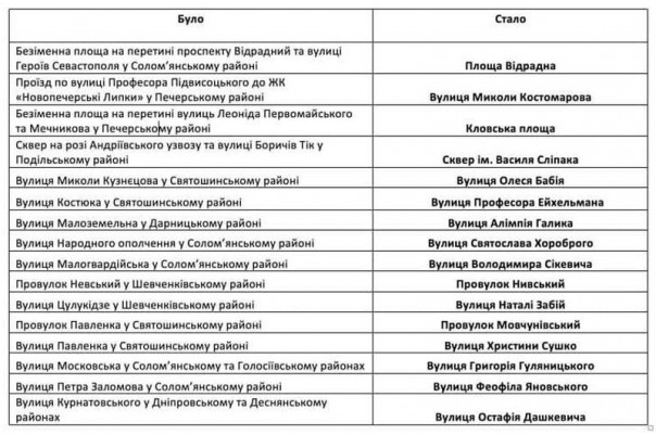 Стало больше Украины и меньше «русского мира»: в Киеве переименовали 16 улиц