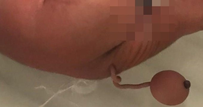 Врачи удалили настоящий человеческий хвост со страшным шариком на конце, выросший у младенца.