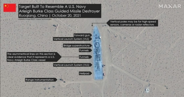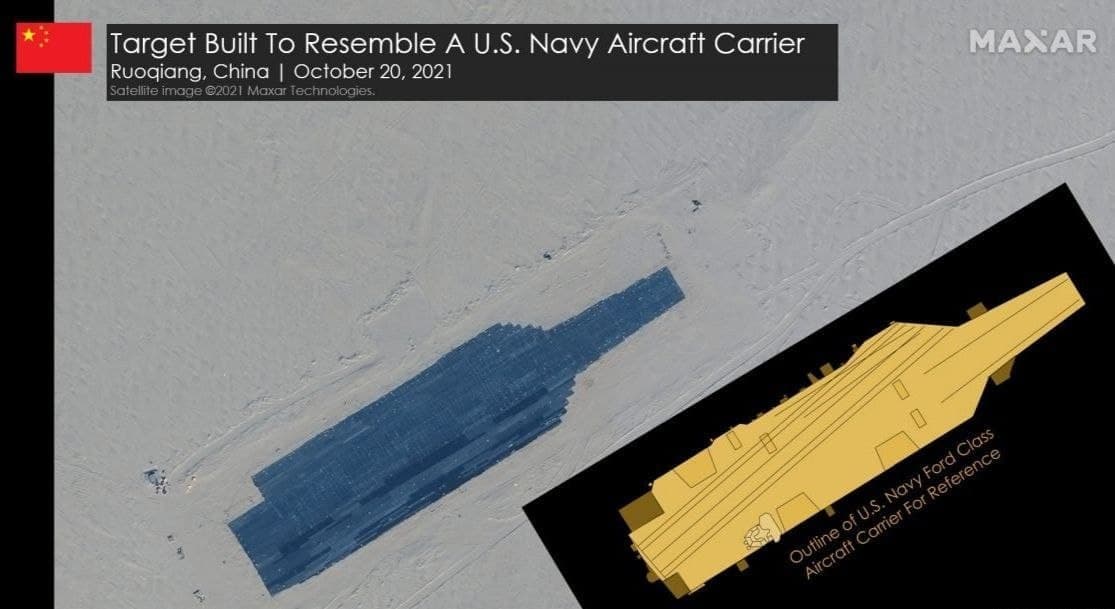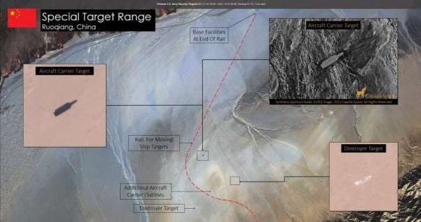 Отмечается, что целью изготовления, вероятно, является тренировка в пустыне Синьцзян. Эти макеты отражают усилия Китая по наращиванию потенциала против ВМС США.