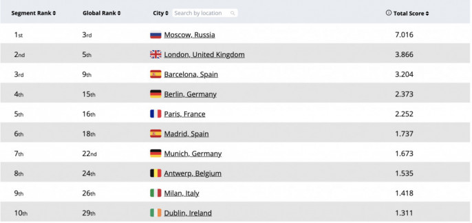 Москва стала первой в Европе и третьей в мире (уступила лишь Нью-Йорку и Сан-Франциско)