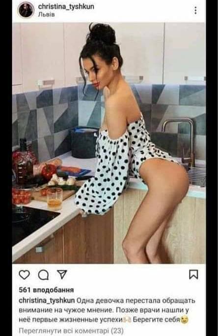 В своих аккаунтах в соцсетях Тишкун размещает много фото откровенного содержания, при этом тексты пишет с ошибками.
