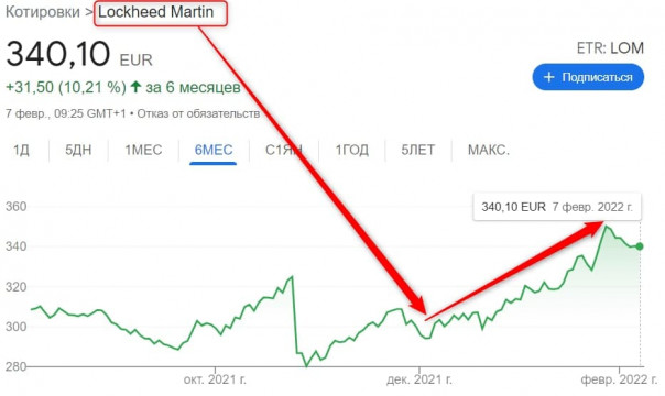 Котировки американских и британских компаний, производящих вооружения, резко пошли в рост на новостях о "вторжении России в Украину".