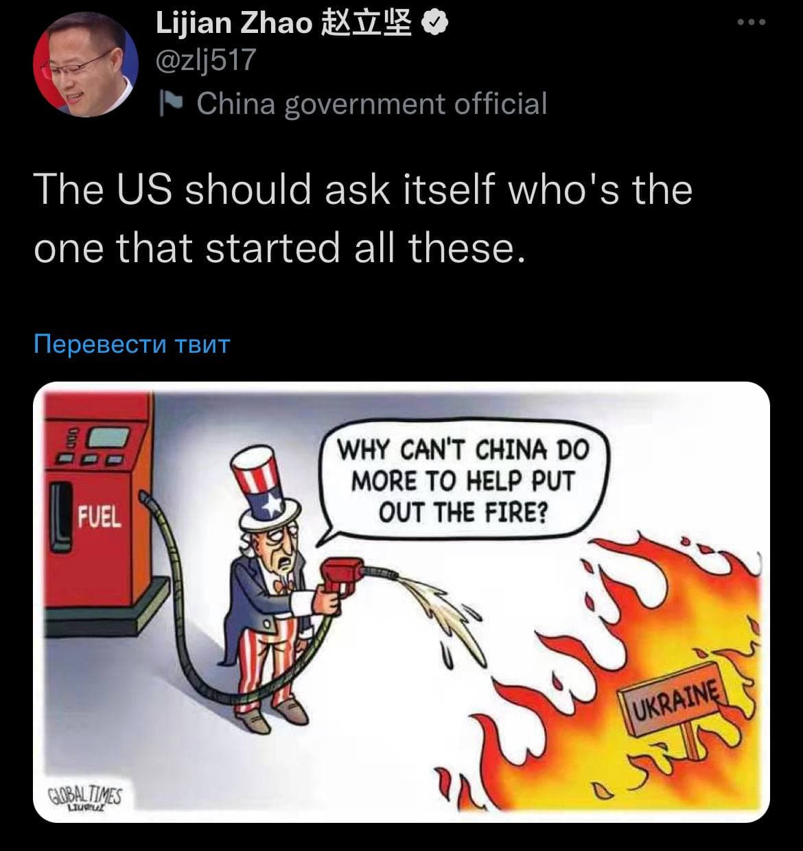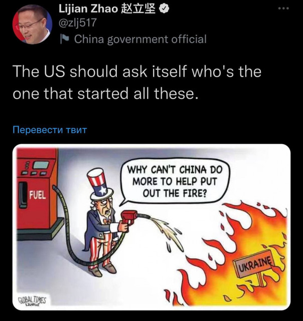 Официальный представитель МИД КНР Чжао Лицзянь комментирует в Twitter события вокруг Украины