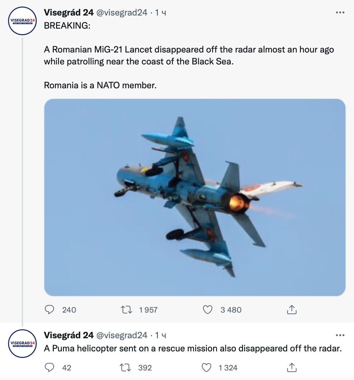 Румынский МиГ-21 исчез с радаров у берегов Черного моря