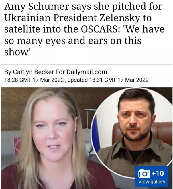 Зеленского приглашают на церемонию вручения Оскара (28 марта). Об этом заявила голливудская актриса Эми Шумер. Видимо, Academy Awards по достоинству оценила постановочные съемки «укроголливуда» в Киеве и Мариуполе.