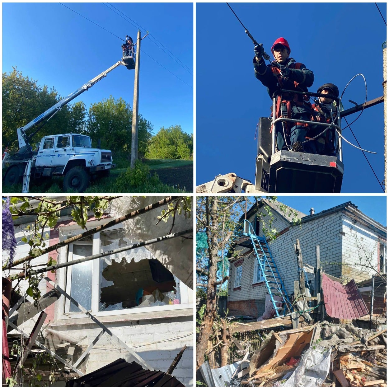 Поврежденная в ходе обстрела со стороны Украины ЛЭП в селе Безымено под Белгородом восстановлена в считанные часы
