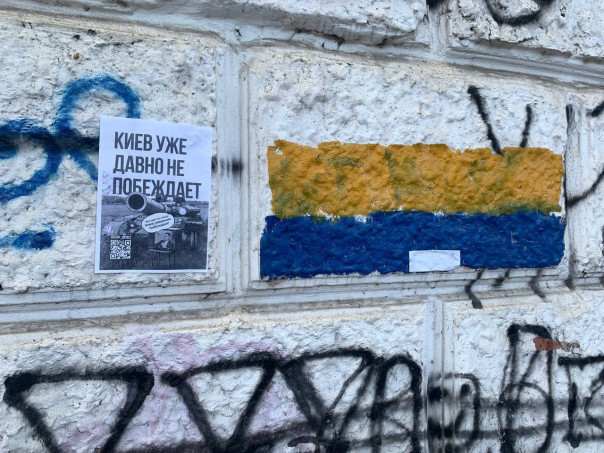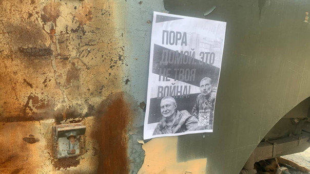 Текст на листовках гласит, что "отказ защищать нацистов не трусость". Если присмотреться, можно заметить, что одна из листовок приклеена на боевую технику ВСУ. Код, кстати, ведёт на канал "Вежливых людей".