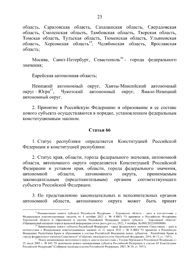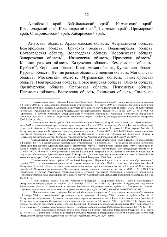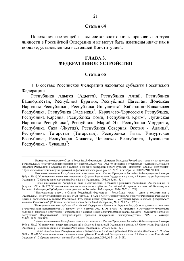 На официальном интернет-портале правовой информации опубликовали текст обновленной конституции России, где в составе страны указаны Запорожская и Херсонская области, а также Донецкая и Луганская народные республики.