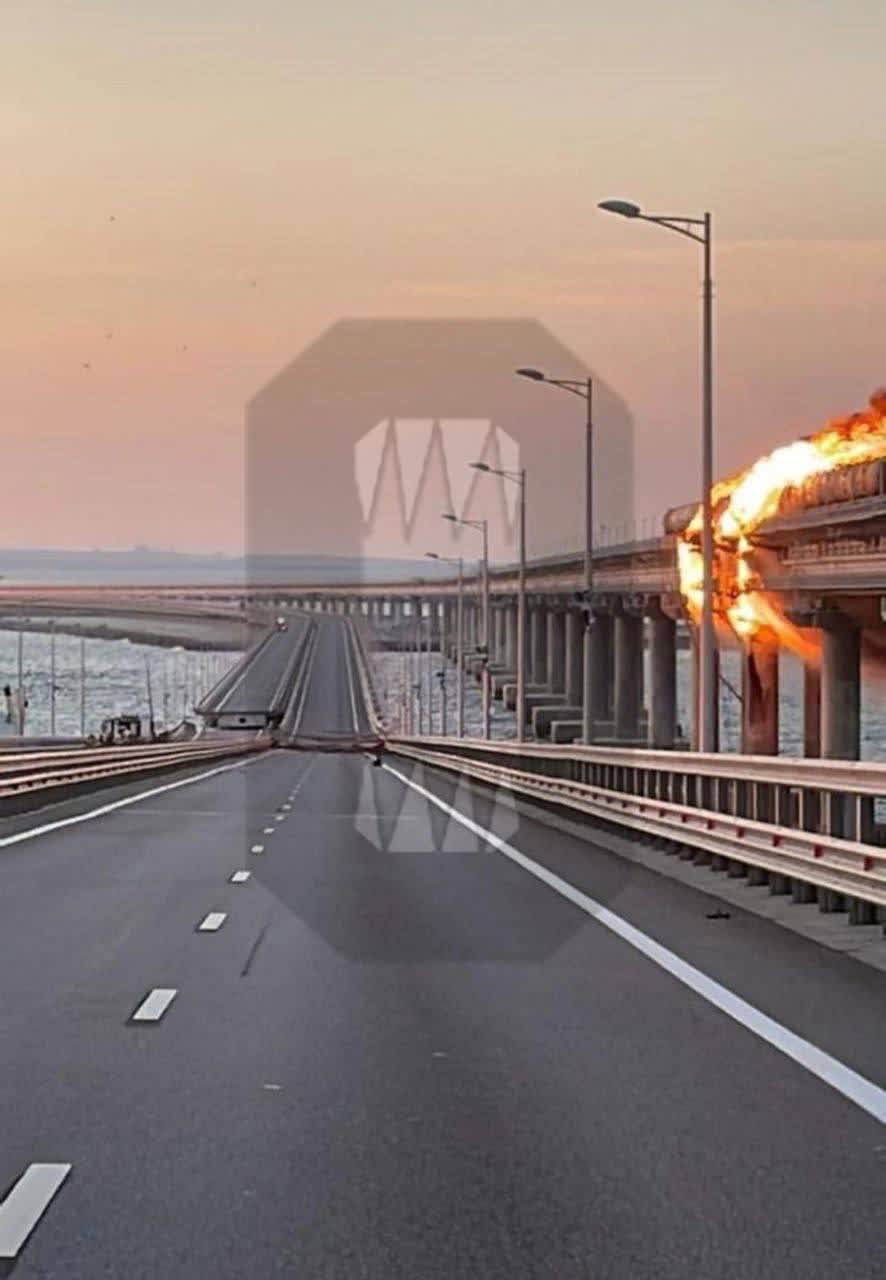Как написал в Telegram-канале советник главы Крыма Олег Крючков, на одном из участков моста загорелась цистерна с топливом.