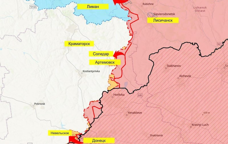 ▪Армия России наступает в районах н.п. Бударки, Терны, Соледар, Нью-Йорк, Первомайское, Невельское и Победа;