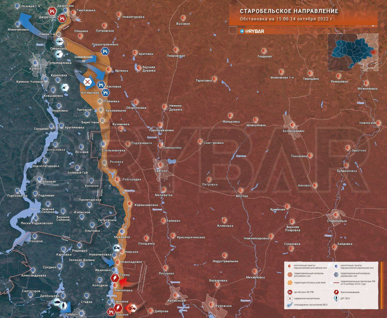 Обстановка на Старобельском направлении по состоянию на 15.00 14 октября 2022 года