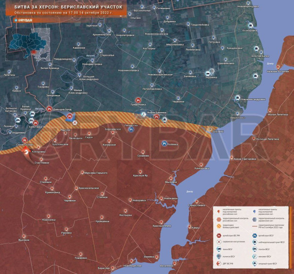 Битва за Херсон: обстановка на Андреевском и Бериславском участках по состоянию на 17.00 14 октября 2022 года