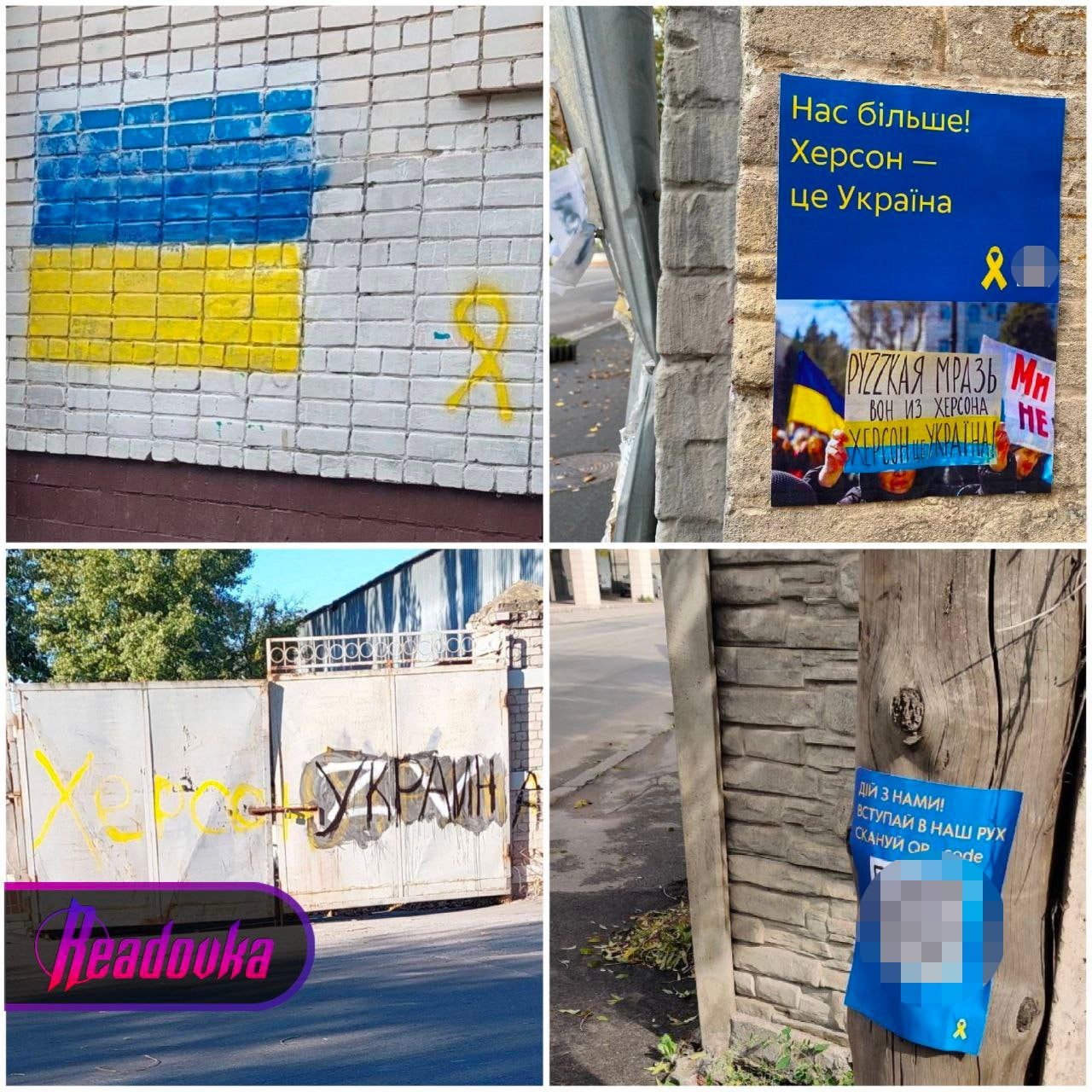 На фоне слухов о высокой концентрации ВСУ на Николаево-Криворожском направлении в Херсонской области повылезали из нор «спящие» агенты украинских спецслужб. По данным Readovka, пока что они собираются по 10 человек, ходят по городу и уродуют улицы «жовто-блакитной» мазней и шизофреническими плакатами.