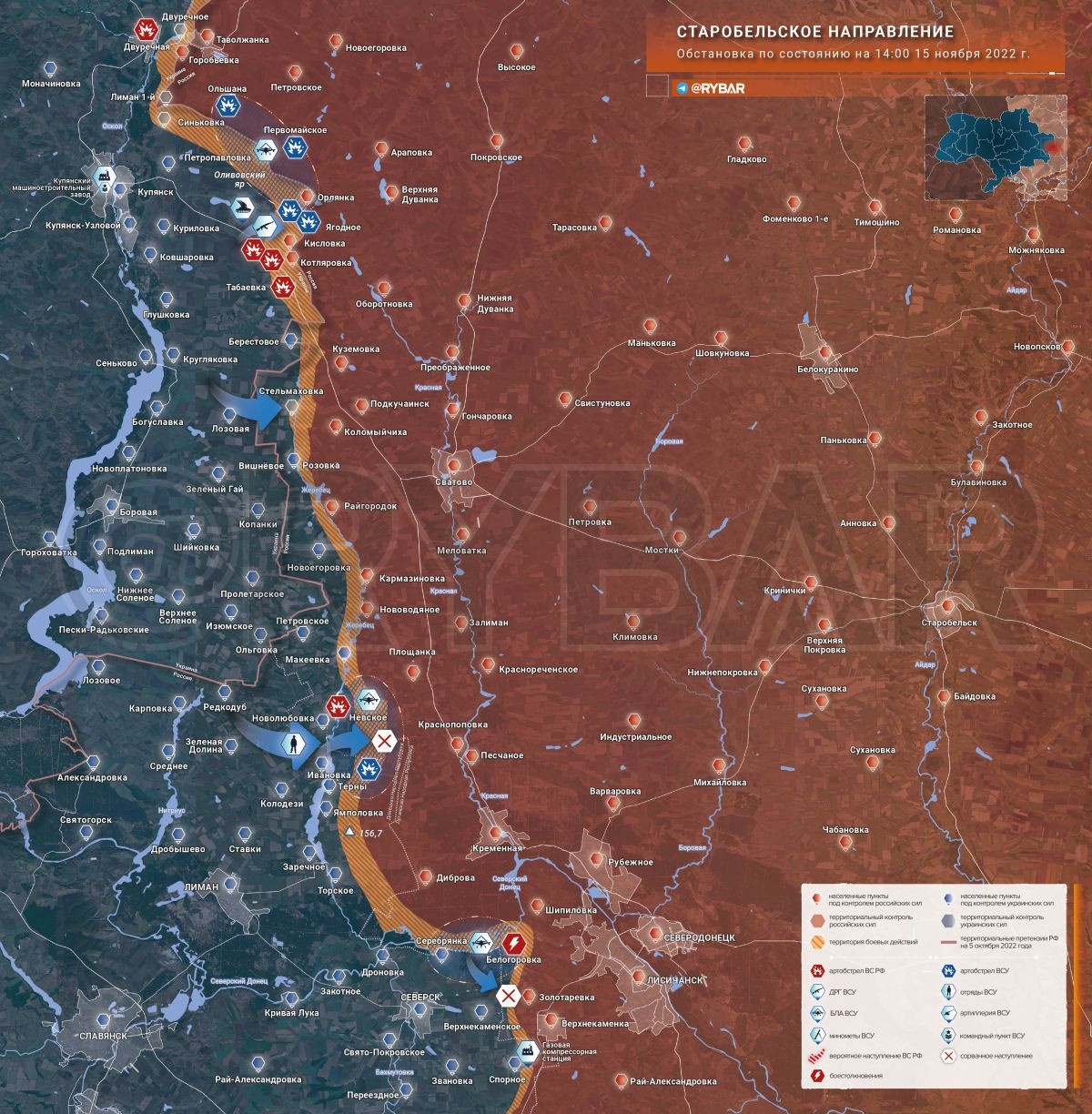 Старобельское направление, обстановка по состоянию на 14.00 15 ноября 2022 года от Телеграм-канала Рыбарь:
