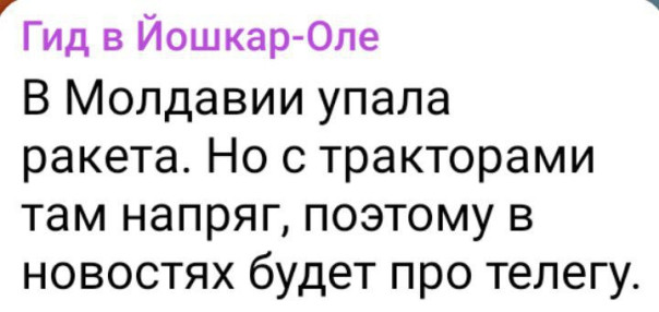 Пресс-служба МВД Молдавии сообщила о том, что пограничники нашли на севере республики упавшую ракету. Ранее аналогичный случай произошел в Польше.