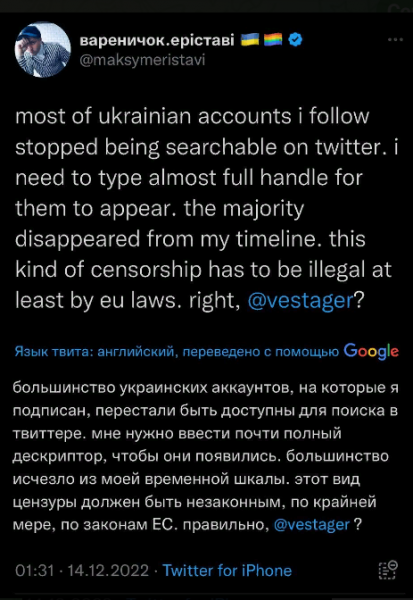 Он также отметил, что пользователи не могут зарегистрироваться или войти в свой профиль, используя для авторизации украинский номер.