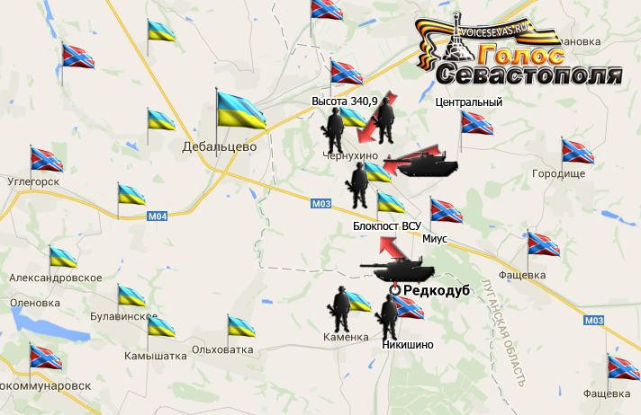 Под Чернухино, по сообщениям украинской стороны, назревает очередной мини-котёл для украинской армии. 2 февраля ополченцы штурмовали позиции сил АТО с помощью танков и пехоты в районе н.п. Редкодуб, Центрального.