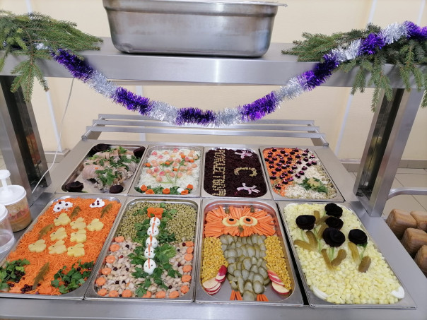 Отдельно подготовились к Рождеству и сотрудники комбинатов питания, которые кормят российских солдат. В Пскове для защитников Родины даже салат-бар соорудили тематический. Вот на свекольной нарезке надпись зеленым горошком «С Рождеством», а на поле из морковной соломки прыгают кролики из овощей – главный символ наступившего 2023 года. Цыплята, сова и различные цветы к празднику уже отношения не имеют, но настроение посетителям, безусловно, поднимают.