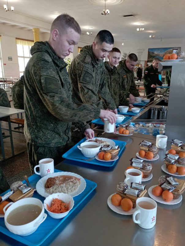 Призывники отметили Рождество в армейских условиях. Разнообразие салатов, горячее на выбор, сладости и фрукты – солдат в этот день ждал настоящий праздник.